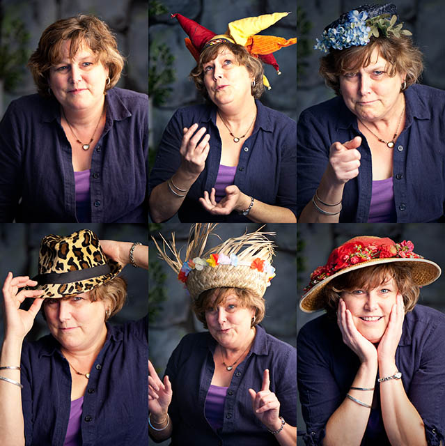 I was lucky to get her to clown around in a few hats before teaching a class recently.