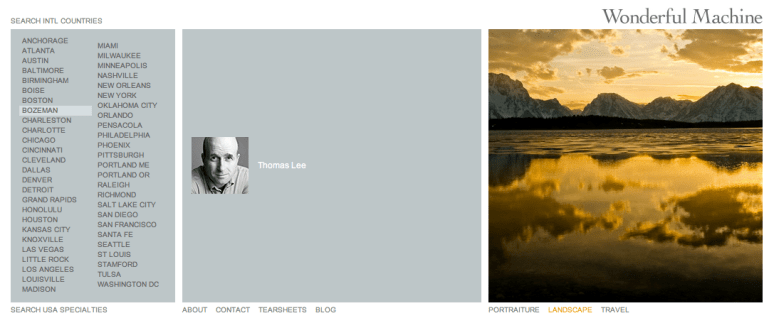 “Wonderful Machine provides art buyers with the most comprehensive source of high quality photographers doing all kinds of work, all over the world. We’re selective about the photographers we show, we list them only in locations where they actually live, and only in specialties in which they are highly proficient,” their website states.