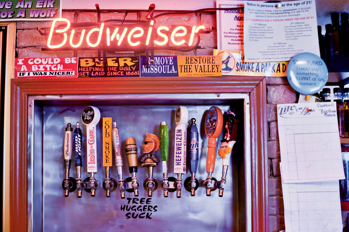 And Lincoln’s Bootlegger bar shows the conflict involved in the changing economy. Long a place where environmentalists were seen as a threat to the local livelihood, Lincoln is now looking to its dramatic scenery as way to draw in tourists. But under the taps for what owner Vicki Krause calls, “greenie beers,” old attitudes linger. “I’m entitled to my own opinion,” Krause explains. “We serve everybody. As long as they’re not offended, I’m not offended.”