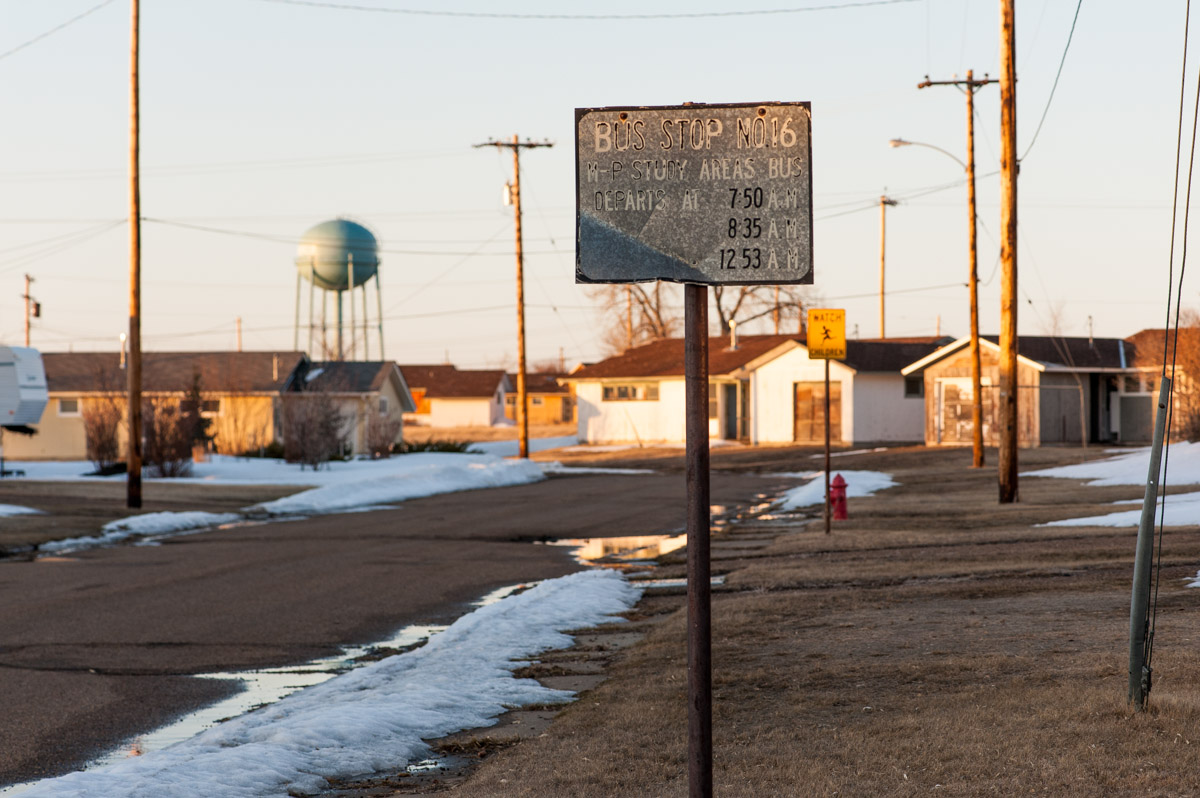 St. Marie occupies what used to be known as the Glasgow Air Force Base during the Cold War. Up to 10,000 people once lived here, McMillion reports, but the base was decommissioned in 1968, before construction was actually finished. Some houses were built — and built well— but never occupied. More than 40 years have passed, but much of the town has been untouched by paintbrush or lawnmower. Even signs listing a 45-year-old bus schedule remain standing.