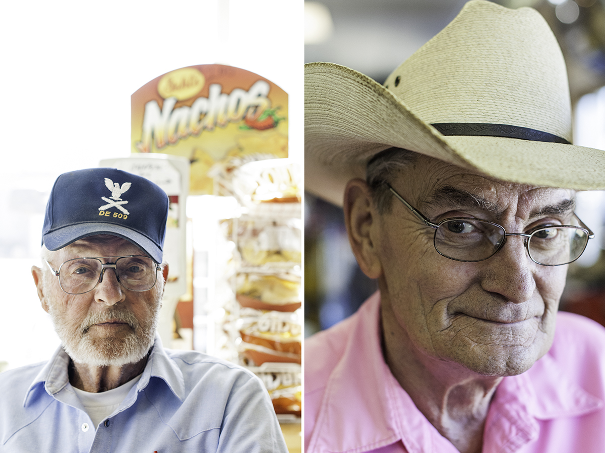 Eighty-six-year-old Lyman Amsden, top left, manages the Corner Store in Broadus. A Broadus native and WWII veteran, Amsden says he has hope for better times in Broadus in the future, but no expectations for any big changes.