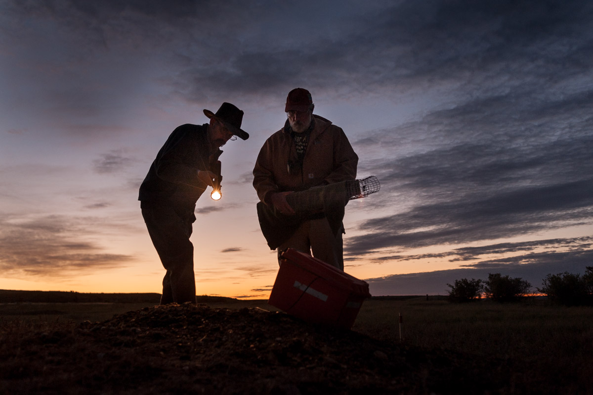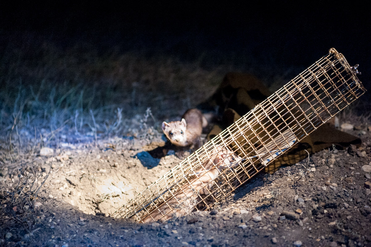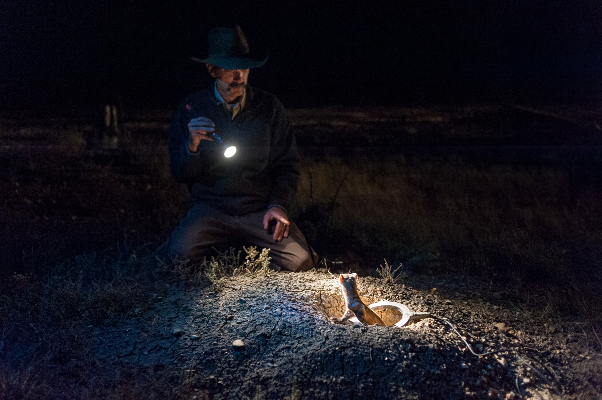 Ferrets are almost entirely dependent on prairie dogs for their survival. In addition to eating prairie dogs almost exclusively, ferrets also need their holes, dens, tunnels, towns as a place to live. And prairie dogs, doing all that digging and mowing all of that grass, aren’t the most popular of neighbors if you’re trying to raise cattle or grow wheat. So we’ve done a lot to get rid of prairie dogs and we’ve been pretty good at it. Up at the UL Bend, there’s a town that’s about 1,000 acres. That’s where Matchett has been working to establish a wild black-footed ferret population.