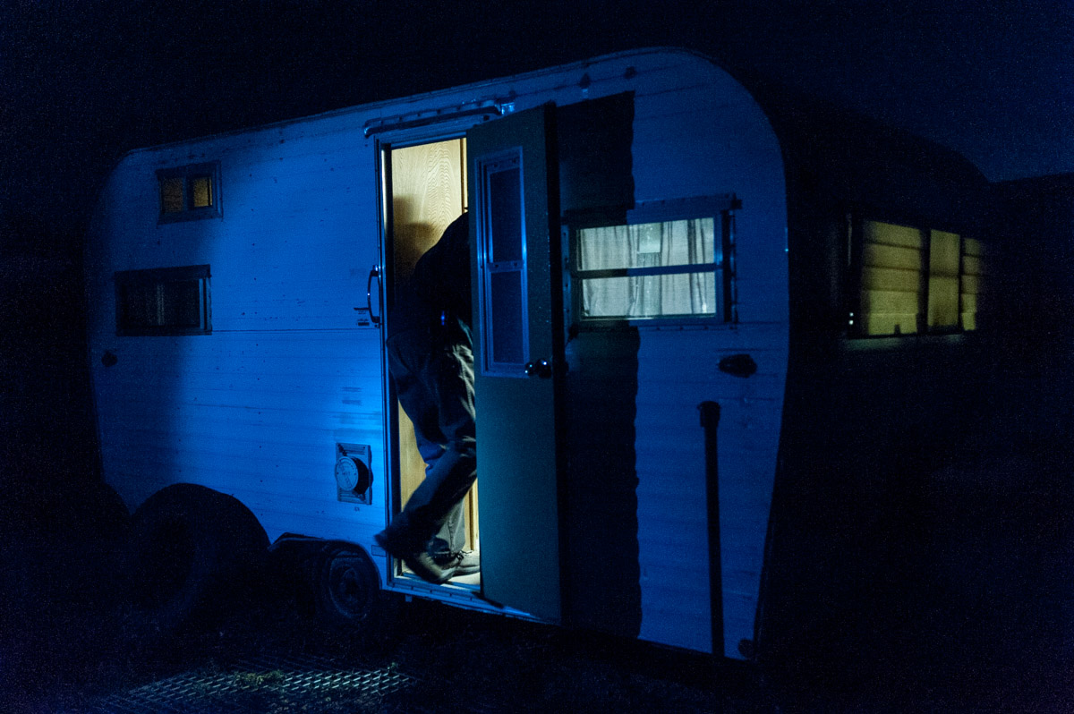Matchett took the kit into one of a line of camper trailers at the site. This one was outfitted as a lab.