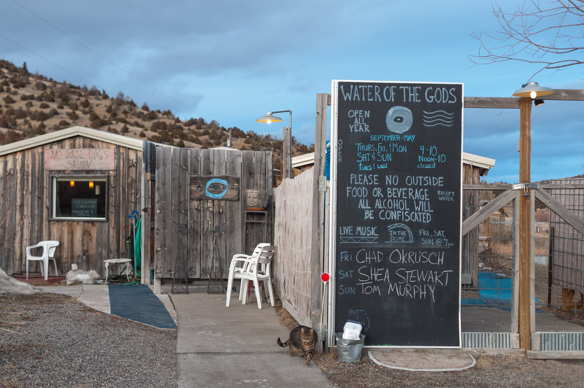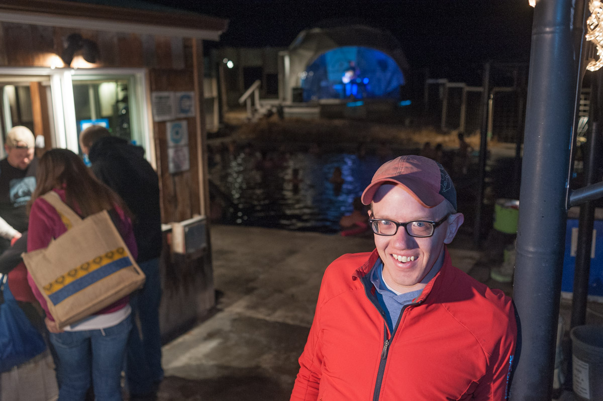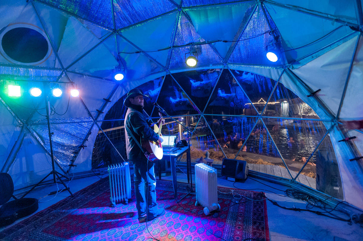 Norris uses their geothermal resource for more than just the pool. They heat the women’s changing room (the men’s is too far from the water pump), the cafe and bar, and this geodesic dome, where Chad Okrusch kept warm while entertaining on a January Friday night.