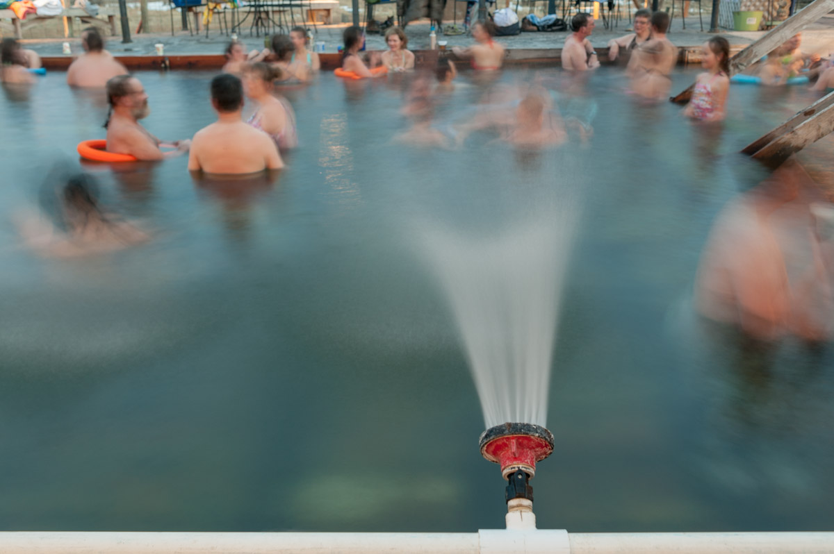 At Norris, the water comes to the surface at 120 degrees Fahrenheit, which is a little too warm for comfort, so they pipe it through some spray nozzles, which allow the water to cool.