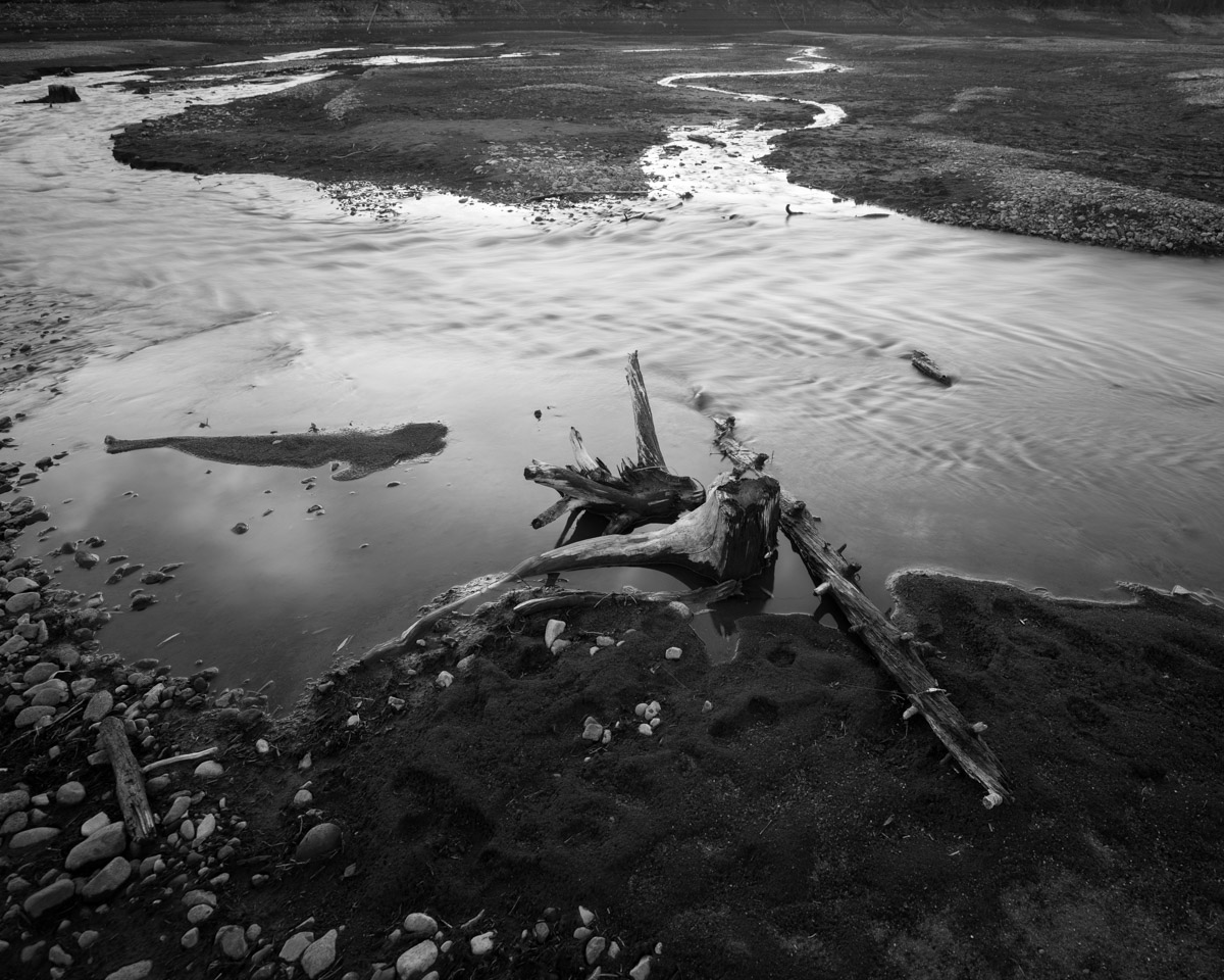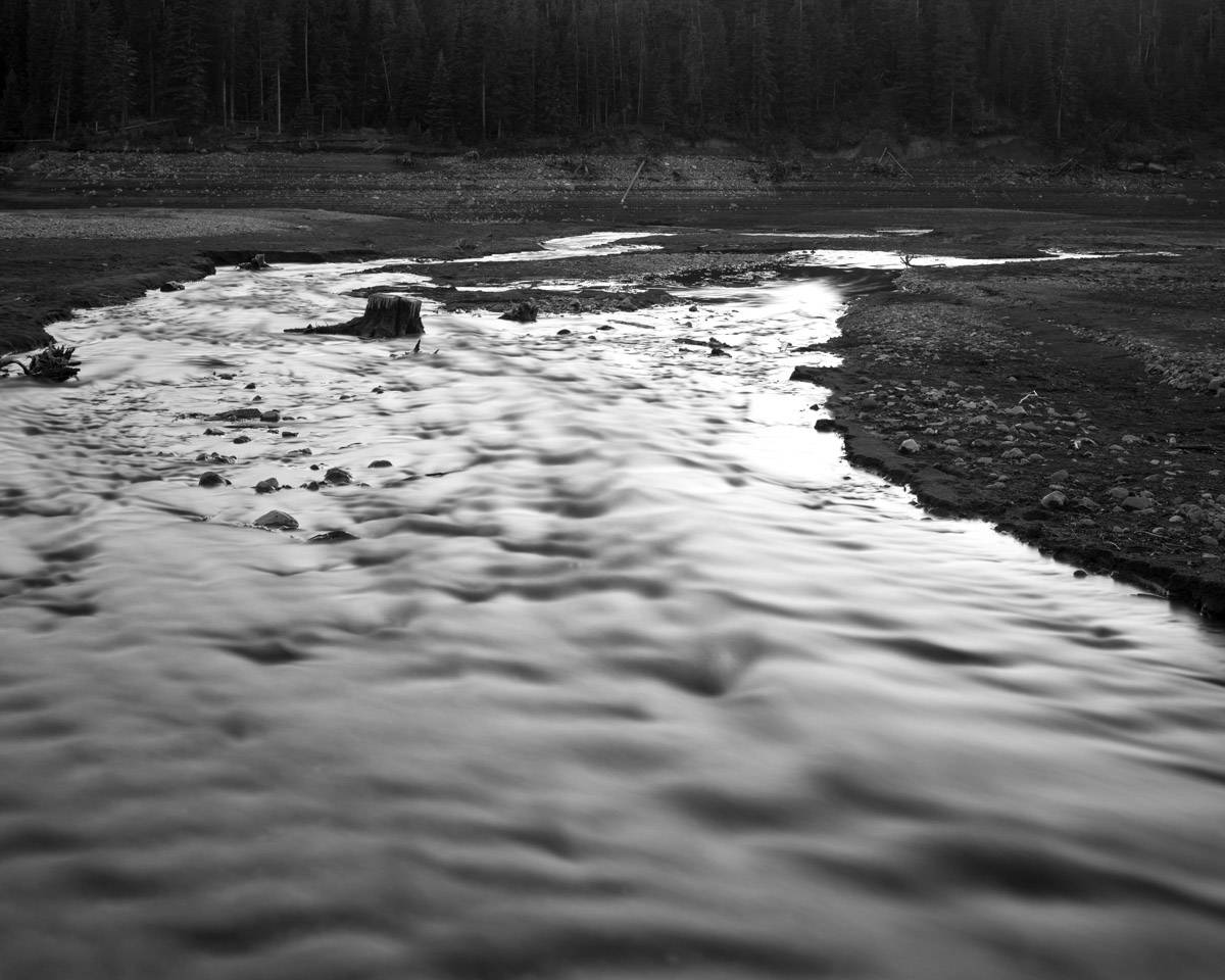 Still, it was an eerie place. The exposed ground, I was told, has only been under water since 1993, when the dam was enlarged. But the creeks still converged and then headed down toward Hyalite Canyon and it was easy to imagine the forest they once ran through, now sandy mud and stumps.