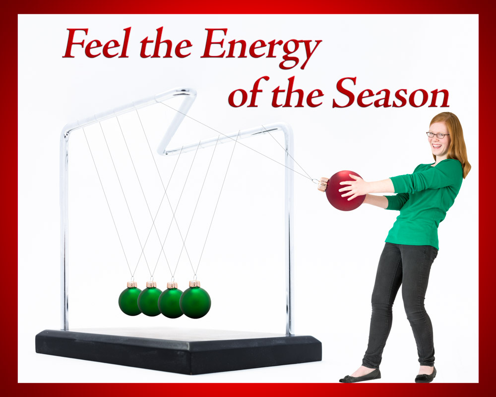 That said, our card may need some explanation: Our daughter, Katie, is 16 this year and really loves science — physics in particular. The object she’s pictured with is called a Newton’s cradle and demonstrates the physics principle of conservation of energy. My dad likes to say, “for every action, there is an equal and opposite reaction.” I think that’s pretty much the same idea.