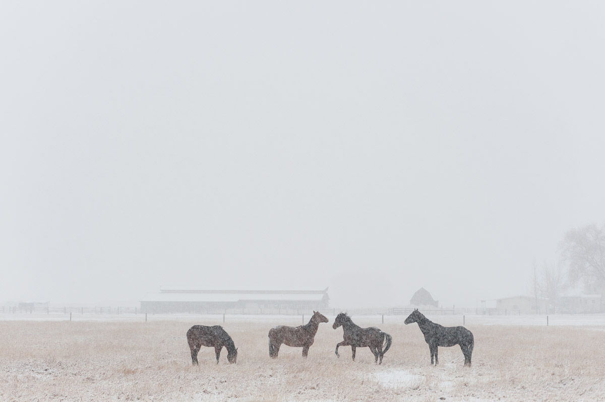 Killing time during my daughter’s cello lesson not long ago, I found some horses enjoying an early-winter snowfall. A magical place, this Bozeman.